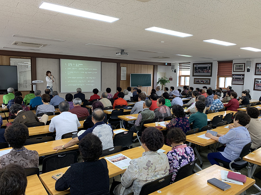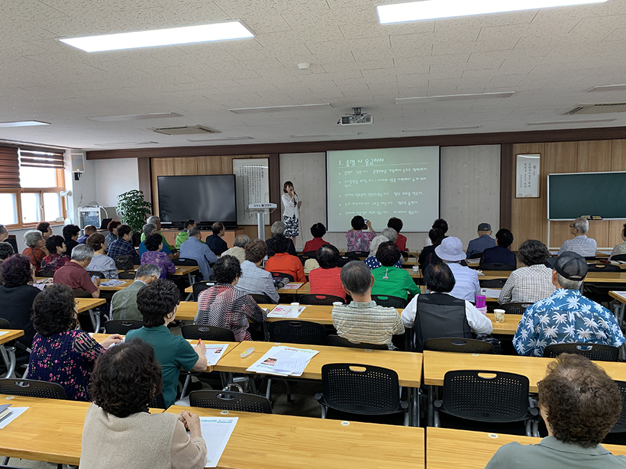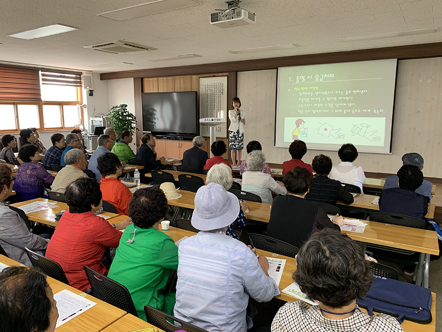 지난 9월5일 김포노인대학에서 응급의학과 이지연 과장님의 건강강좌를 개최하였습니다.