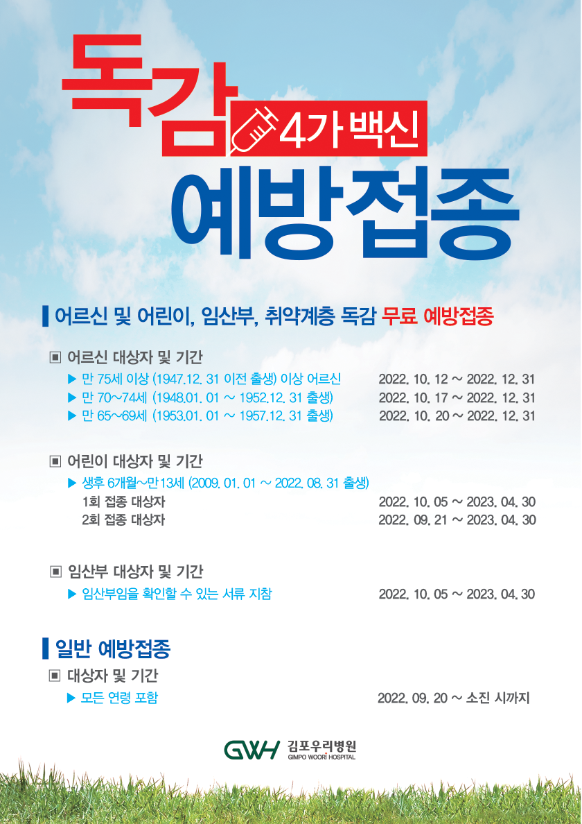 독감 무료 예방접종 공지된 일정을 참고해 주시기 바랍니다.​​
