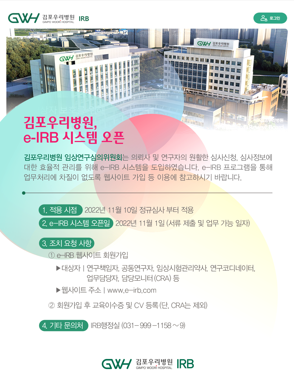 김포우리병원, e-IRB 시스템 오픈