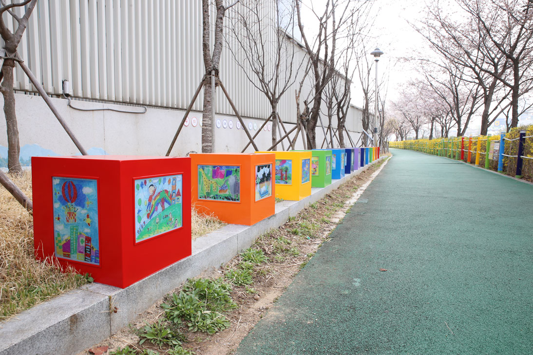 그렇게 탄생한 무지개 의자 길에는 지난 13년간 김포 관내 초등학생들이 그린