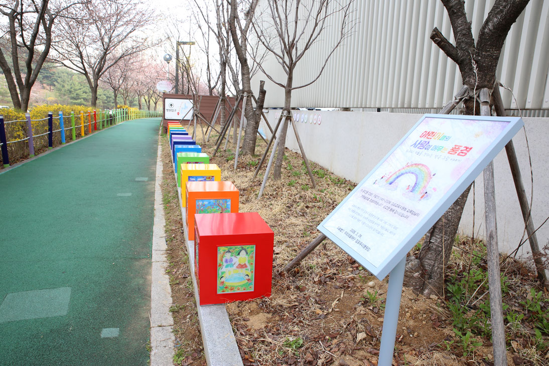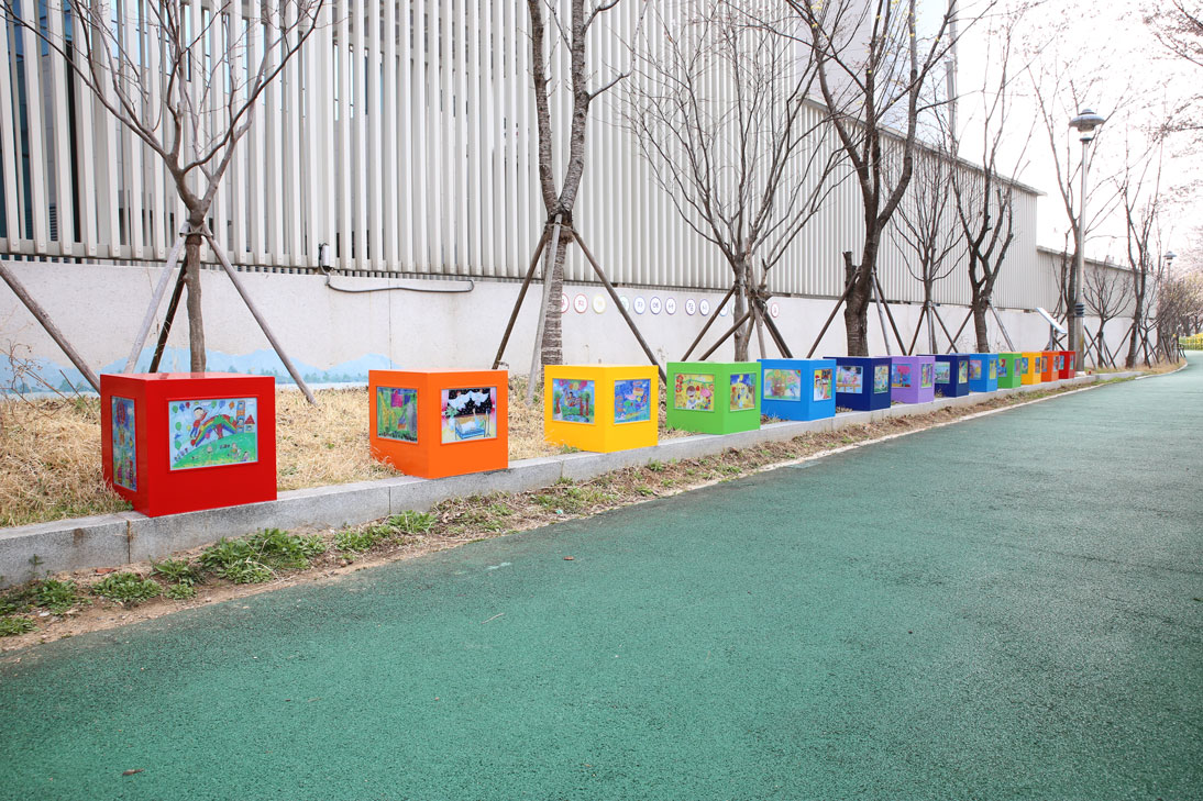 이제 어린이들의 그림으로 만들어진 무지개 의자가 더해져